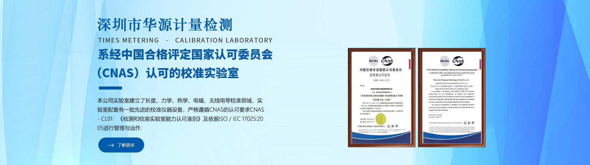 深圳市華源計(jì)量檢測(cè)有限公司,成立于2013年,是一家專(zhuān)業(yè)從事儀器計(jì)量、校準(zhǔn)、銷(xiāo)售、租賃和維修等方面業(yè)務(wù)的高新技術(shù)企業(yè)。公司位于科技發(fā)達(dá)的南山區(qū),憑借優(yōu)越的地理位置,雄厚的技術(shù)實(shí)力,精誠(chéng)與創(chuàng)新結(jié)合的服務(wù)精神,打造出具有行業(yè)影響的計(jì)量技術(shù)機(jī)構(gòu)。本公司已獲得中國(guó)合格評(píng)定國(guó)家認(rèn)可委員會(huì)(CNAS)校準(zhǔn)實(shí)驗(yàn)室認(rèn)可資質(zhì),認(rèn)可編號(hào)為L(zhǎng)10151。